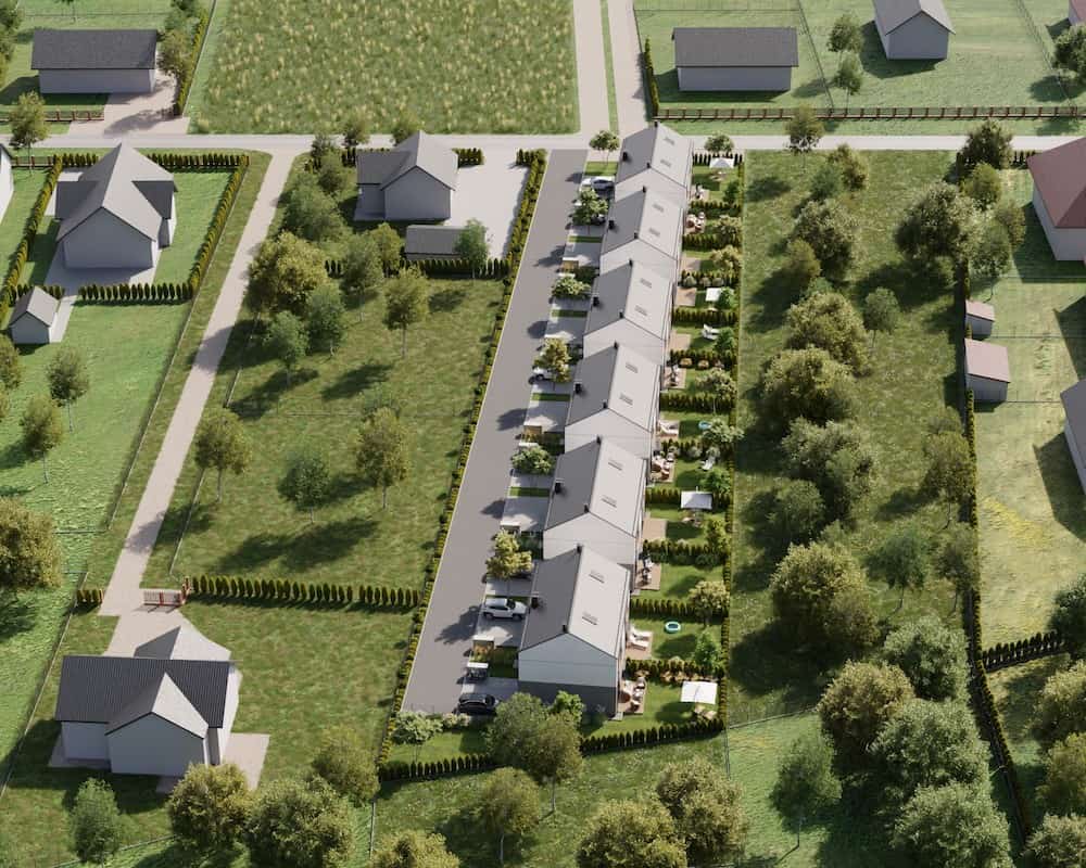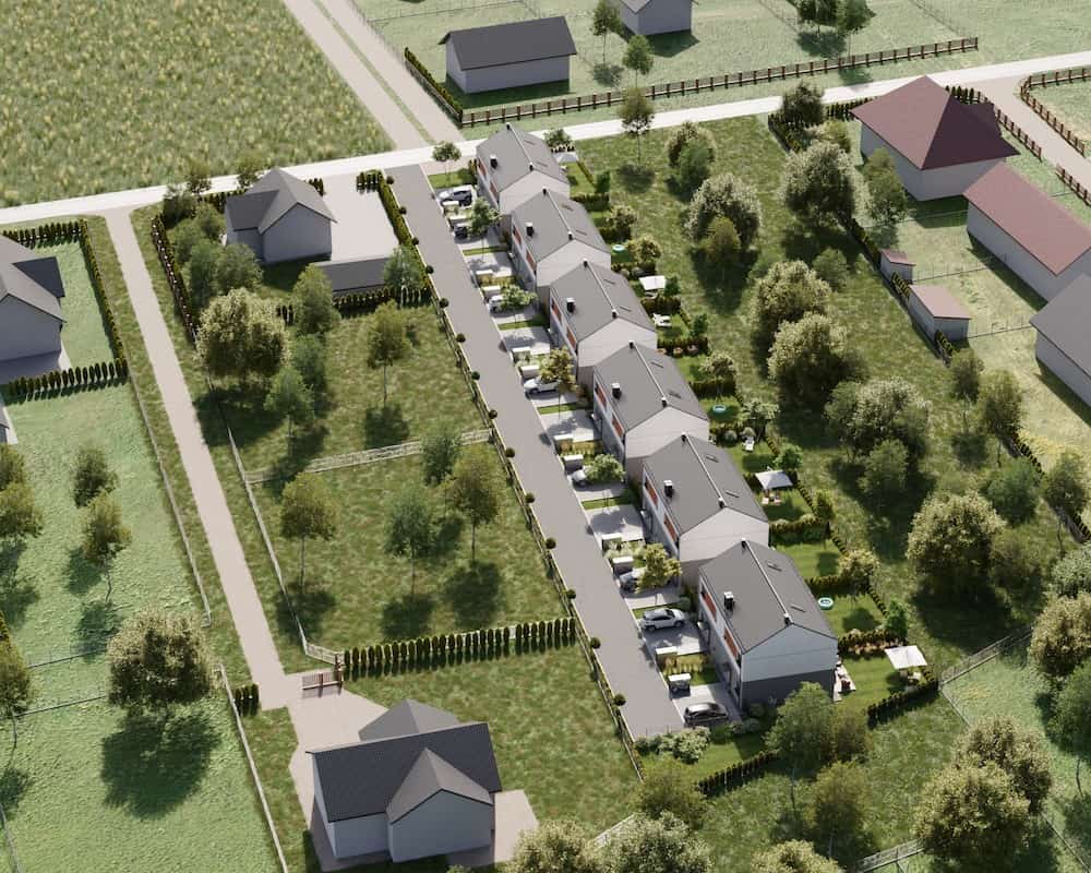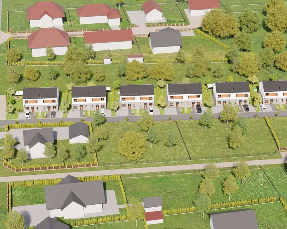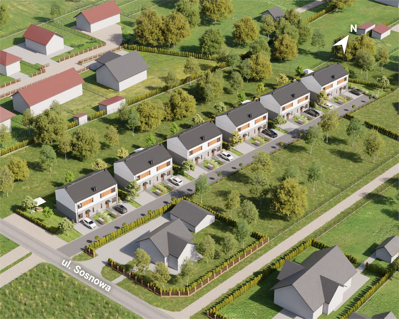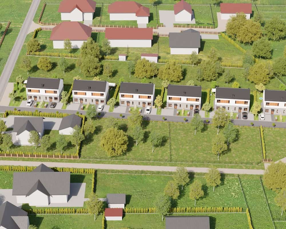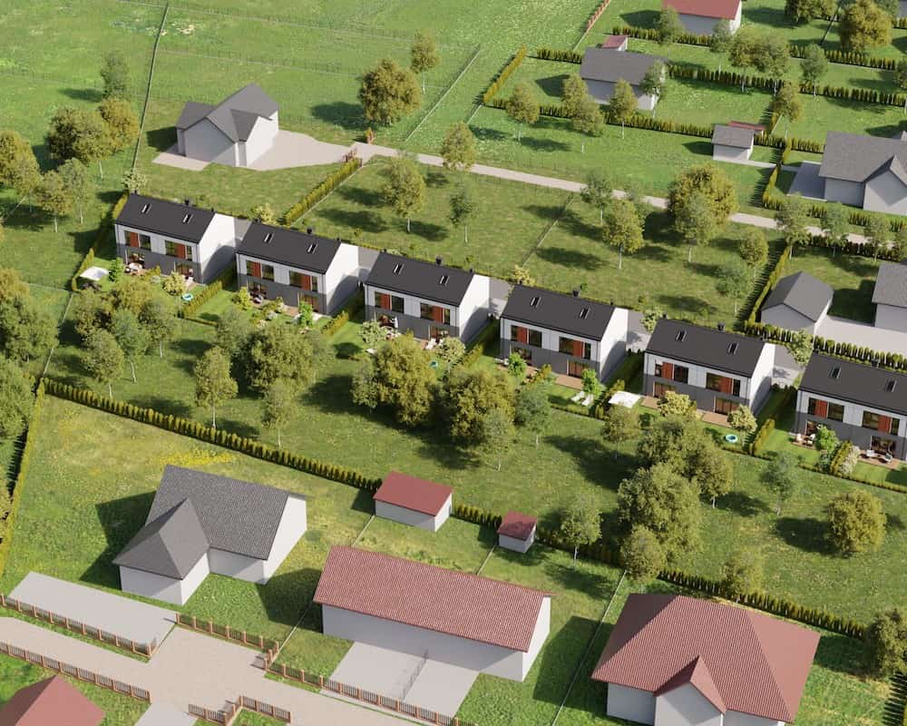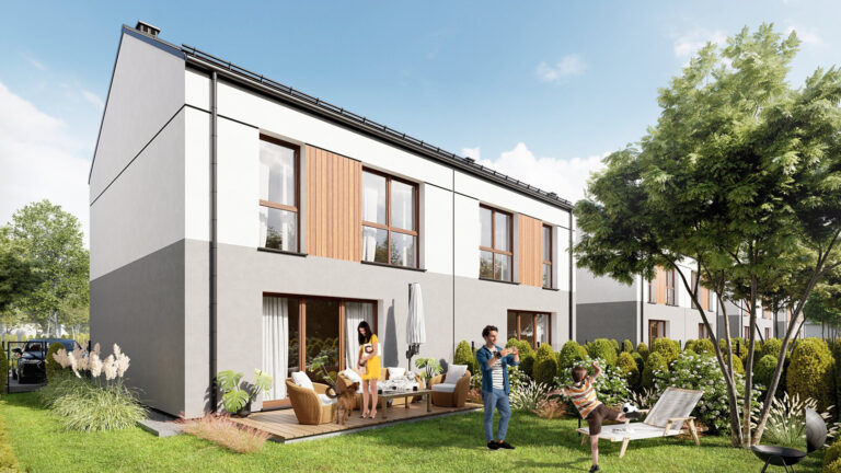 Domy mają duże ogrodzone ogrody, w których można komfortowo, w intymnej atmosferze wypoczywać na świeżym powietrzu.