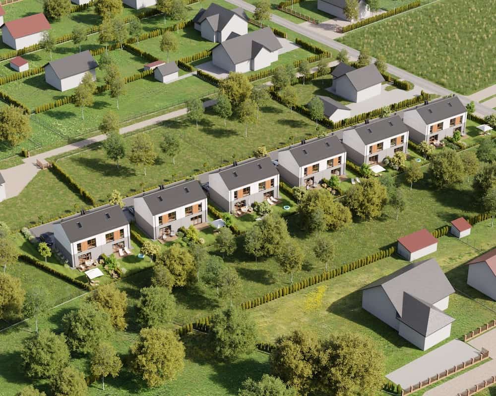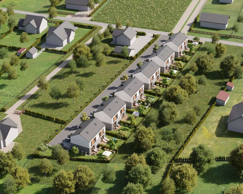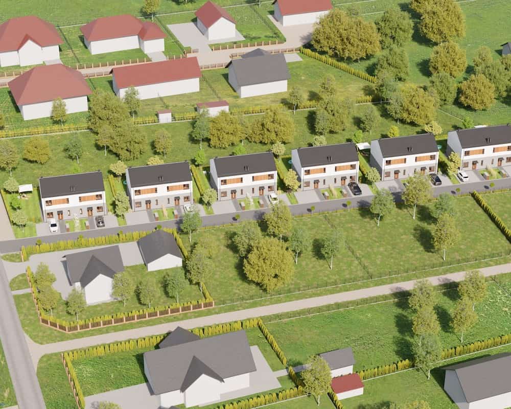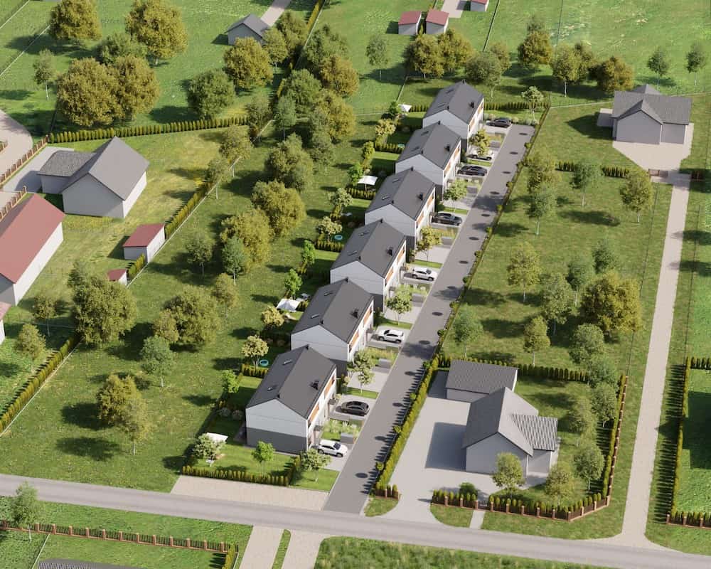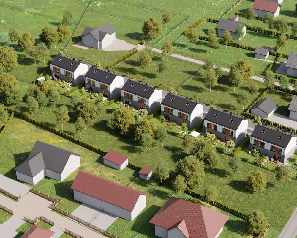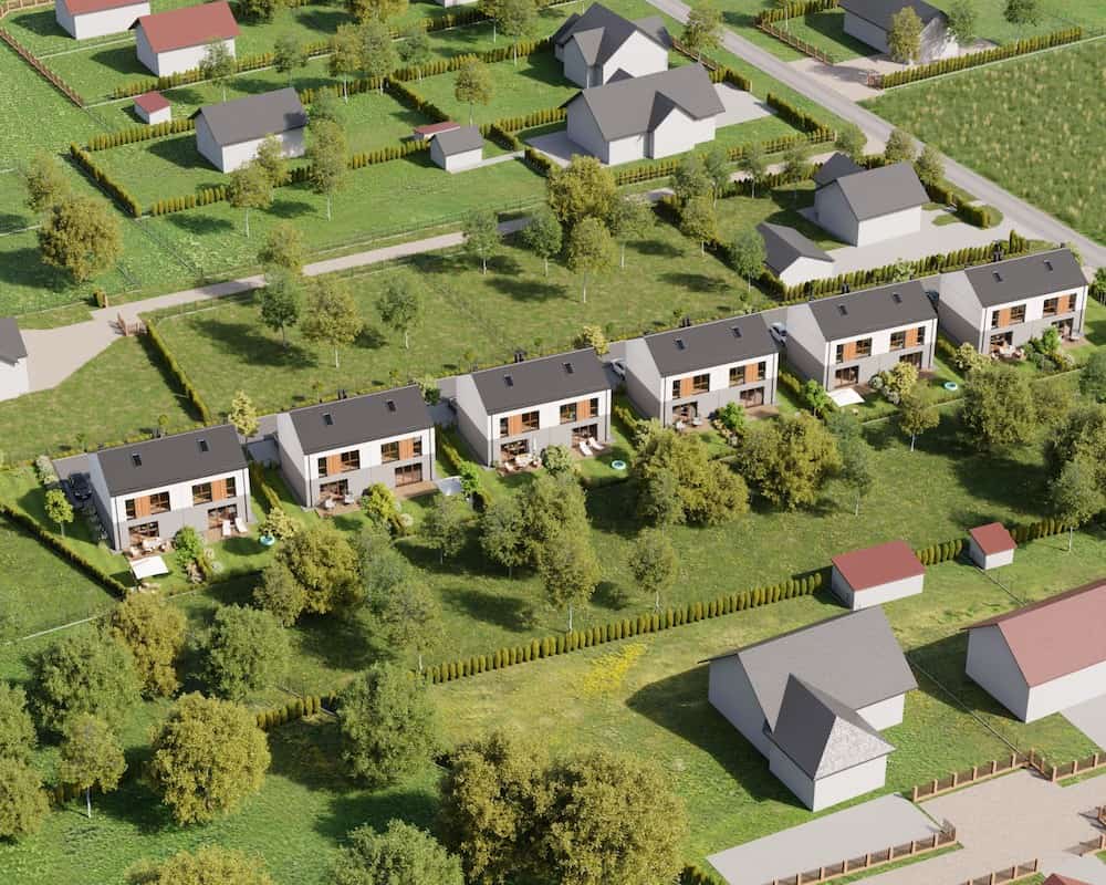 Domy mają duże ogrodzone ogrody, w których można komfortowo, w intymnej atmosferze wypoczywać na świeżym powietrzu.