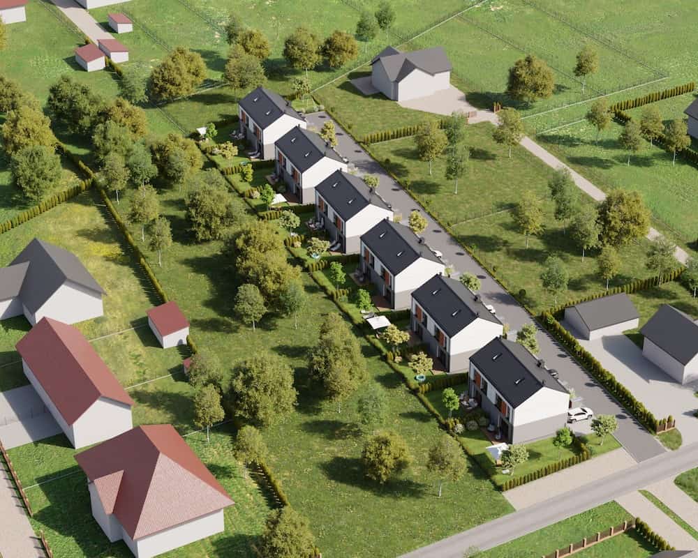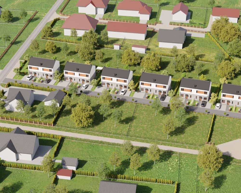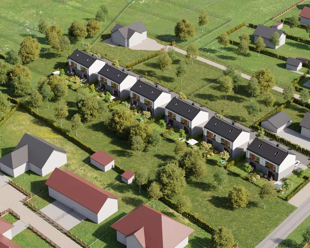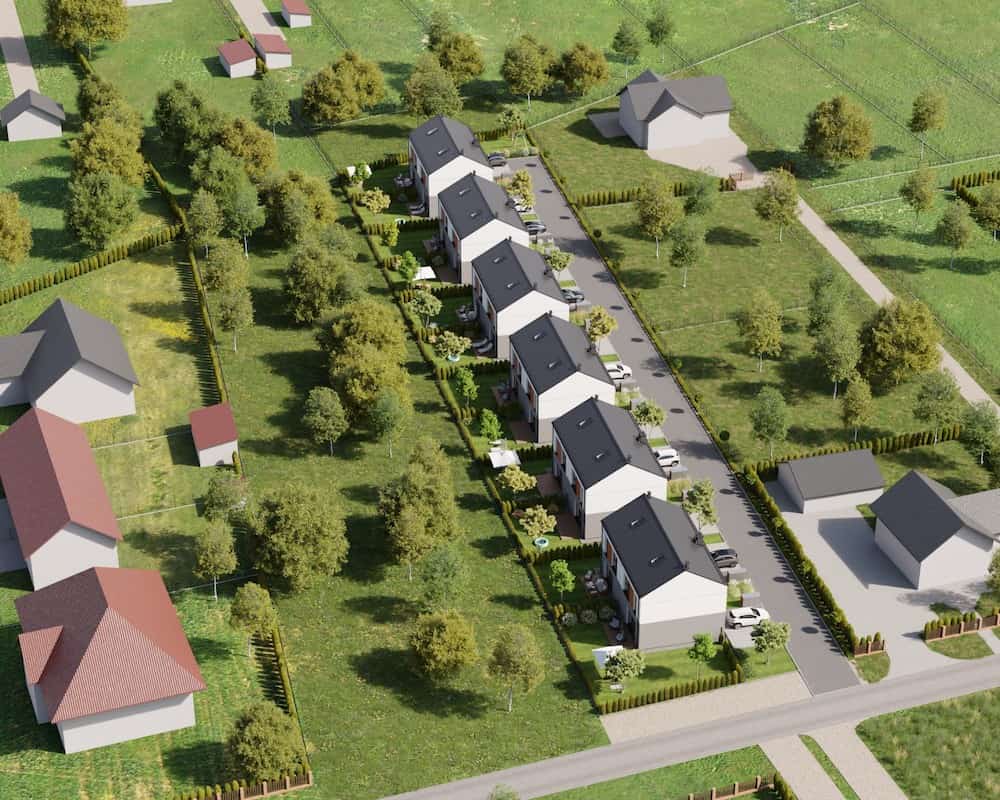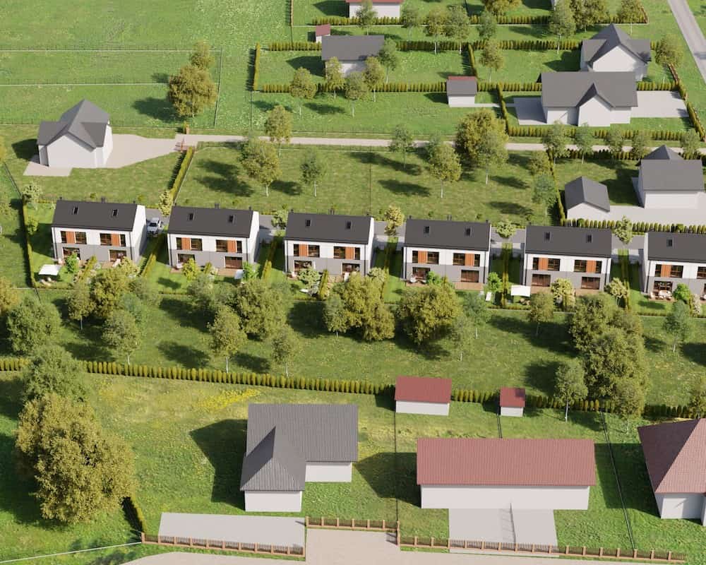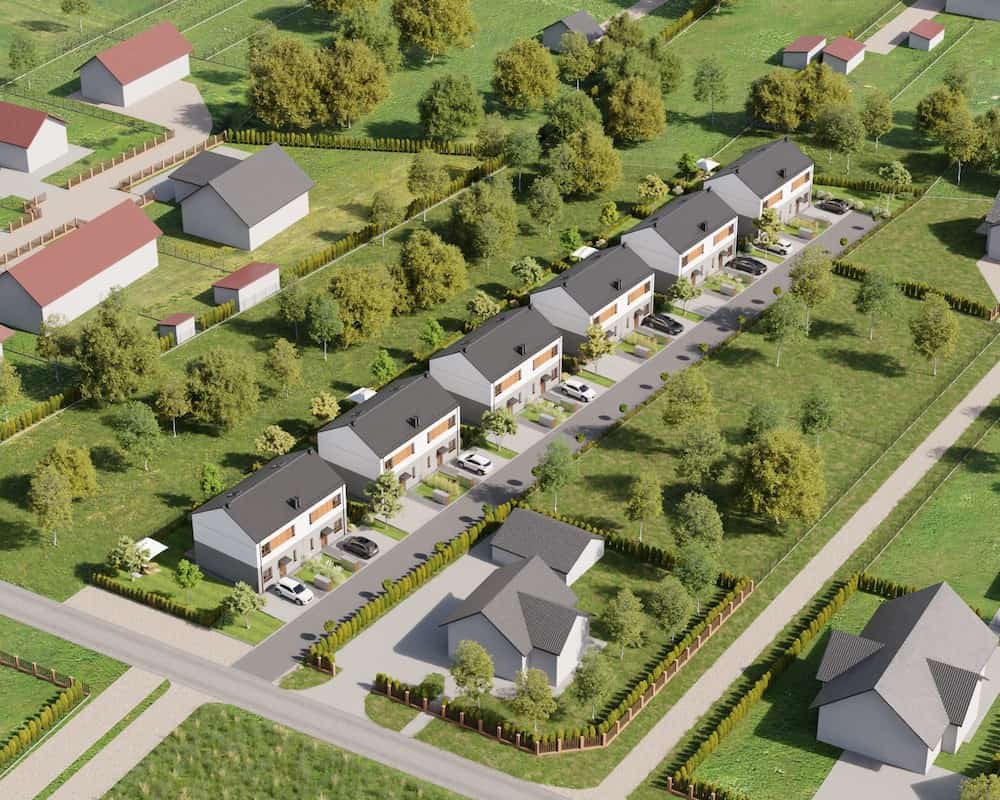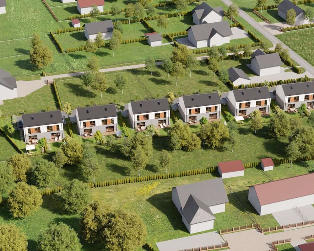 Domy mają duże ogrodzone ogrody, w których można komfortowo, w intymnej atmosferze wypoczywać na świeżym powietrzu.