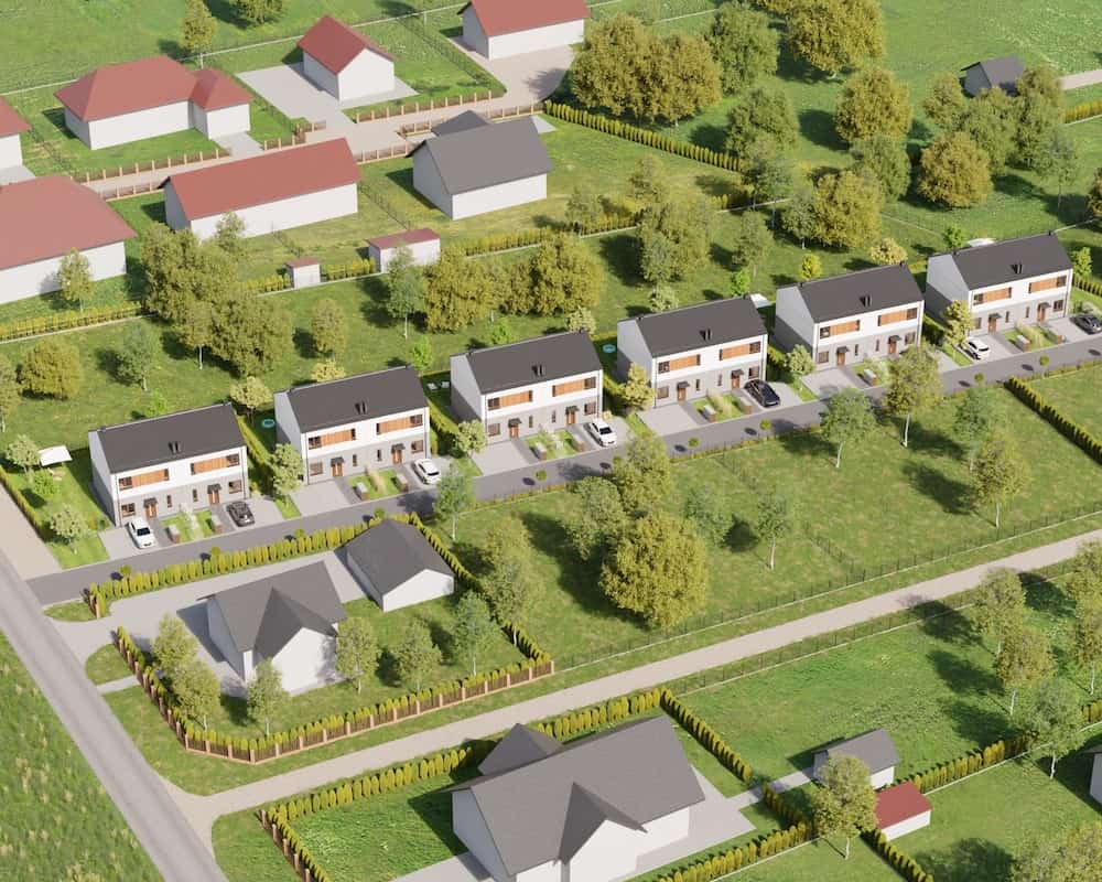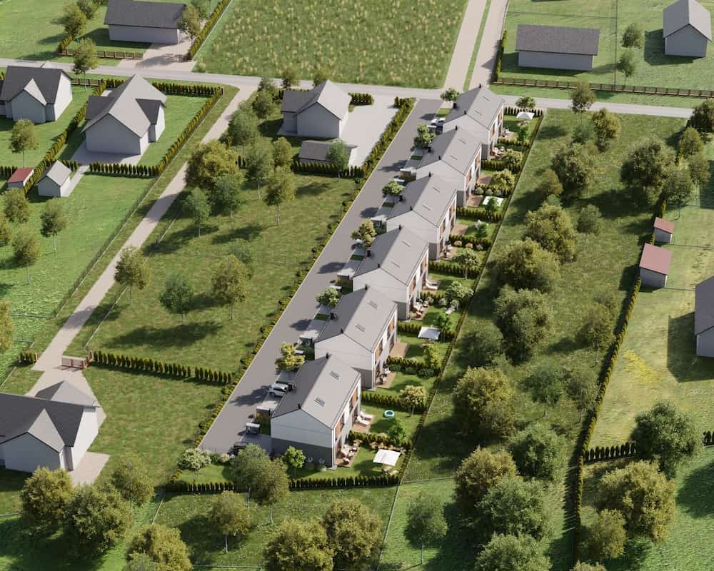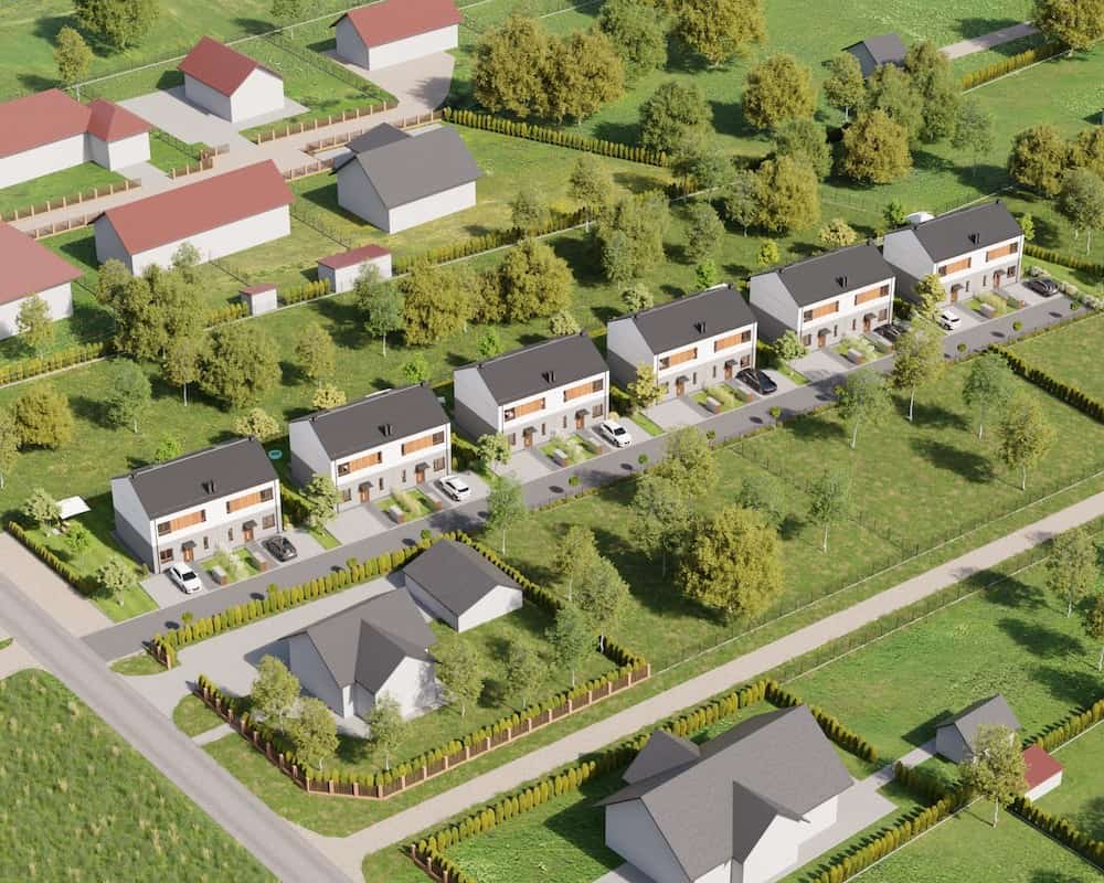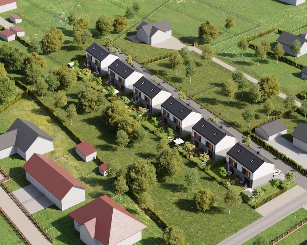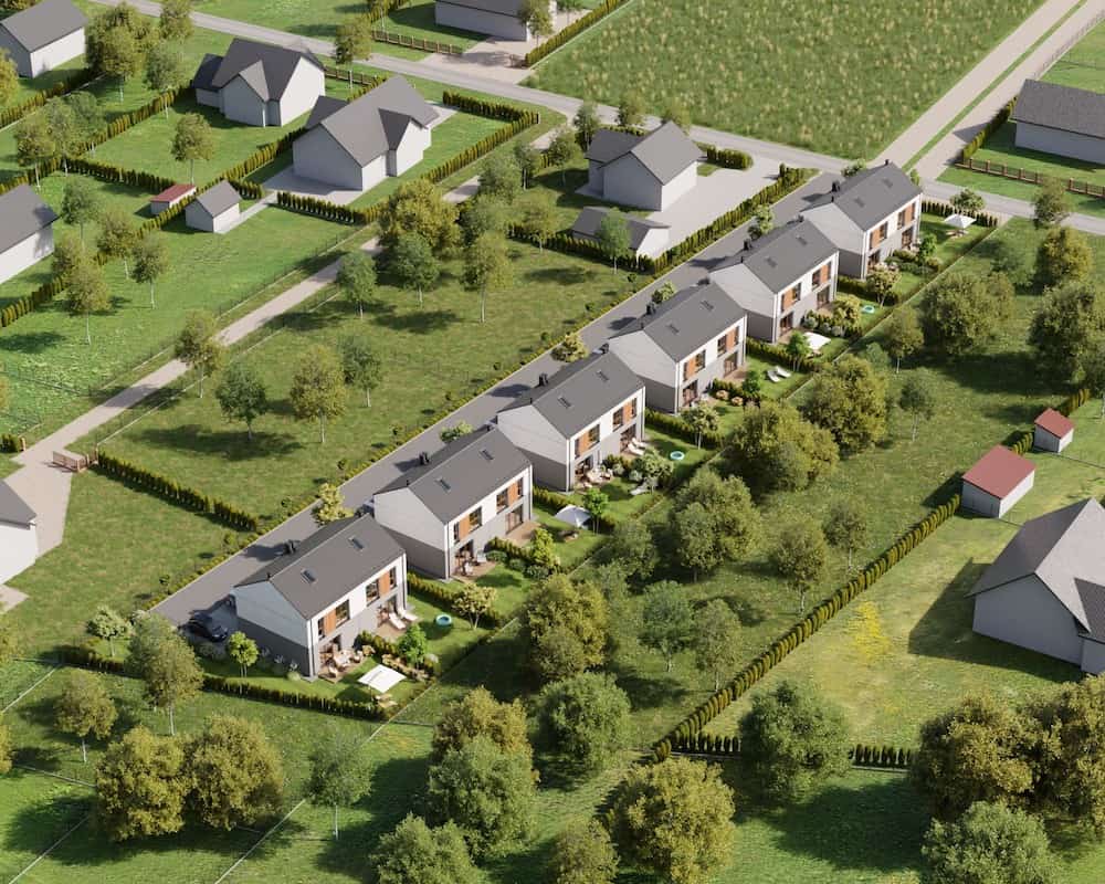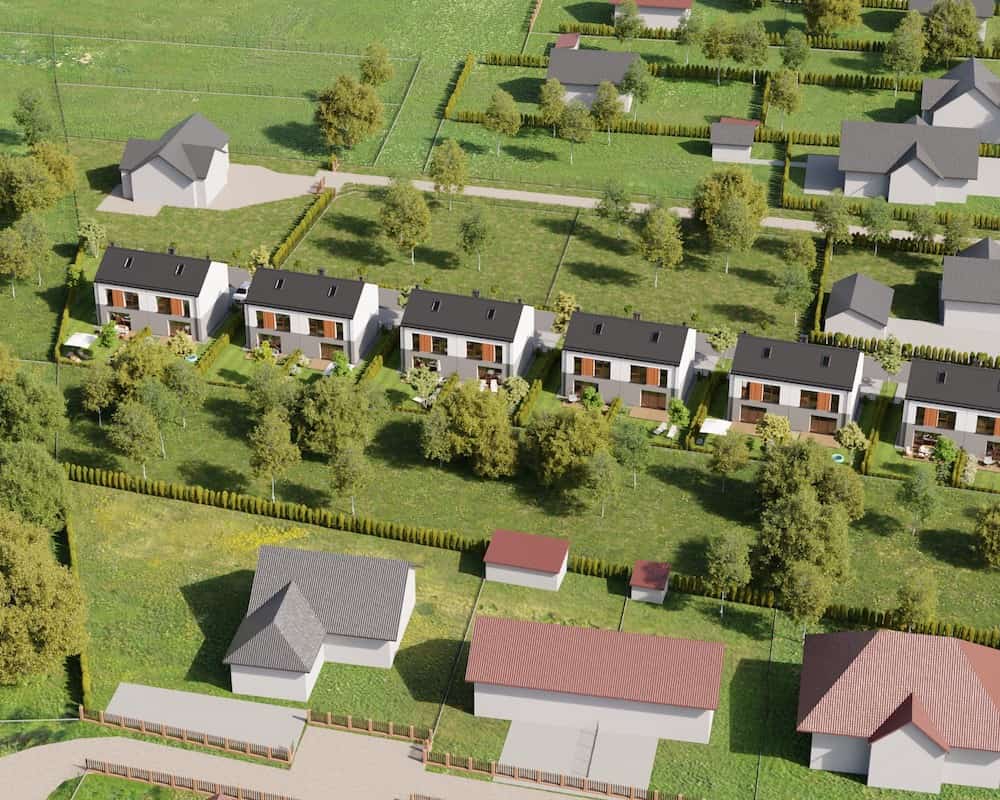Domy mają duże ogrodzone ogrody, w których można komfortowo, w intymnej atmosferze wypoczywać na świeżym powietrzu.